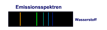 Das diskrete Linienspektrum des Wasserstoffs, das Bohr damit erklärte, dass ein Elektron, beim “Sprung” von einer “höheren” Umlaufbahn, die einem höheren Energieniveau entspricht, auf eine niedrigere Bahn, Licht emittiert. Jede Spektrallinie wurde erzeugt über den Abfall eines Elektrons von einer höheren Bahn auf eine niedrigere. Dieses diskrete Linienspektrum war ein weiteres Indiz, dass Energie im atomaren Bereich nur in ganz speziellen Portionen=Quanten aufgenommen bzw. abgegeben wird, so wie es Max Plank bei seinen Studien zum Strahlungsverhalten eines “schwarzen” Körpers um 1900 und Albert Einstein beim fotoelektrischen Effekt 1905 herausgefunden hatte.