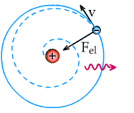 Die diskreten Umlaufbahnen des Elektrons um das Proton waren jedoch problematisch. Wenn das Elektron ein klassisches Teilchen wäre, das um den Kern rotiert, wie der Mond um die Erde, dann würde ein gerichteter Strom fließen, der nach Faraday und Maxwell wiederum ein Magnetfeld erzeugt, das wiederum in den Raum Energie abstrahlt. Durch den Energieverlust verlöre das Elektron aber seine Geschwindigkeit und fiele letztlich in den Kern, so dass Materie und somit auch wir gar nicht existieren könnten. Tun wir aber oder nicht?