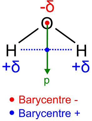 Das H2O Molekül ist im Gegensatz zum CO2 ein permanenter elektrischer Dipol. Das Sauerstoffatom “zieht” die Elektronen der beiden Wasserstoffatome zu sich hin: