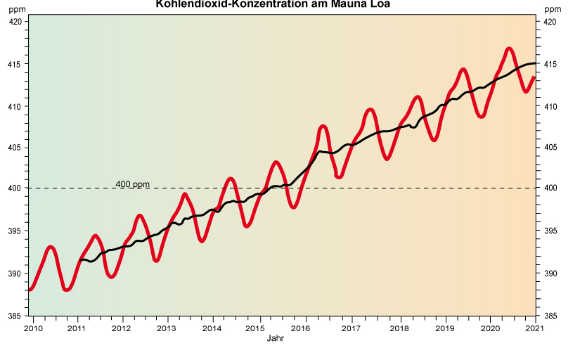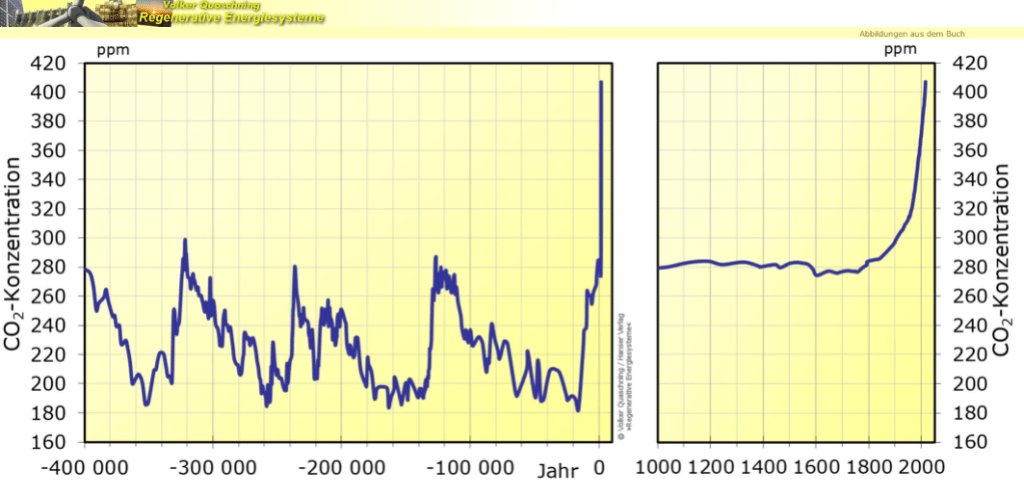 - Verlauf der CO2 Konzentration in den letzen 400.000 Jahren.