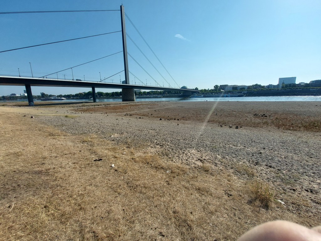Als Rheinländer kann so leicht einem nichts erschüttern. Es sei denn Vater Rhein geht es nicht gut. Und diese Situation erlebe ich als Rheinanlieger nun immer häufiger. Zum erstenmal in sehr schütterer Form erlebte ich den Rhein 2003. Es war ein sehr heißer und dementsprechend auch trockener Sommer. Viele sprachen vom Jahrhundertsommer aber mir schwante schon, dass dies nun öfter vorkommen könnte als einmal im Jahrhundert. Denn entweder bin ich in einen relativitischen Zeitsprung geraten und keiner hat mir, wie immer ;-), etwas gesagt oder an diesem “Gott verdammten” Entschuldigung ich meine, dieser von Menschen gemachte Klimawandel ist real. Denn im Jahre 2018 war der Sommer zwar nicht heißer aber trockener als in 2003 und jetzt in 2022 ist er noch trockerner und die Trockenheit ist auch europaweit gesehen noch trockener als 2018. Wenn also kein relativitischer Raumzeit Effekt aufgetreten ist, plädiere ich für die naheliegendere Erklärung.