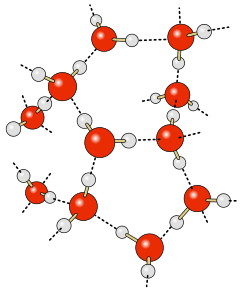 You may have heard about ‘hydrogen bonds‘ in school. This term describes the electric attraction between H2O molecules. In illustrations, red ‘balls’ often represent oxygen, while white ones symbolize hydrogen atoms.