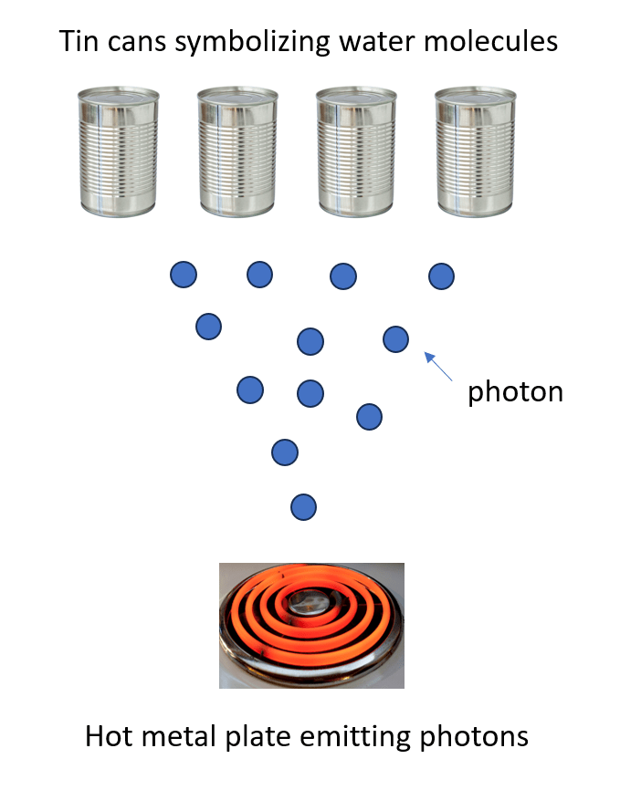 For our current discussion, however, understanding quantum mechanics simplifies our explanation of how the heat from the metal plate gets transferred to the water molecules above it (the energy ‘quanta’ are also called photons):