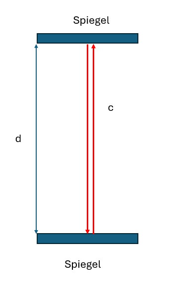 Wenn der Abstand zwischen den Spiegeln d beträgt, dann ist die Zeit, die das Licht benötigt, um von einem Spiegel zum anderen zu gelangen:
