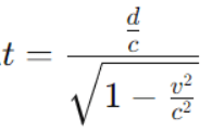Wir wissen, dass d/c die Zeit t’ ist, die der bewegte Beobachter misst. Damit ergibt sich: