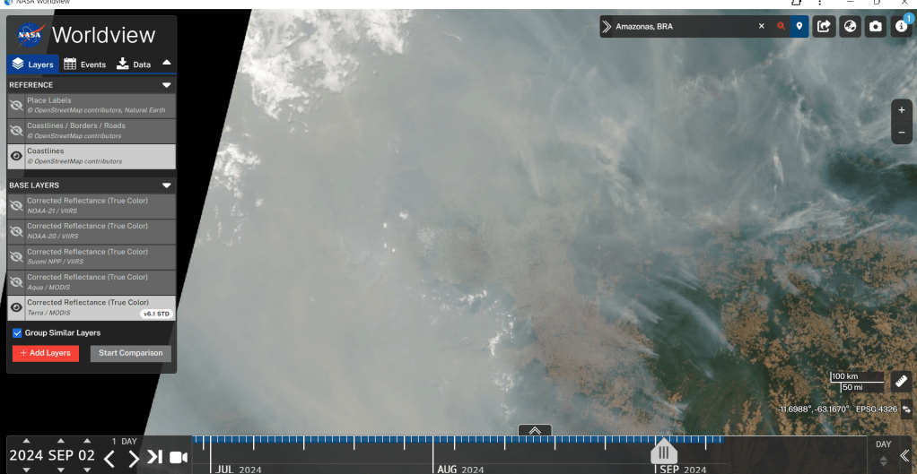As the satellite images roll in from early September 2024, the extent of the damage becomes ever clearer. A thick haze of smoke, dark and oppressive, blankets the Amazon rainforest. It twists and churns through the atmosphere, veiling the land below in a cloak of destruction. But this is no ordinary fog—this is the smoke of death, the unmistakable signature of fires set ablaze, sparked by the hand of man and the parched earth below.
