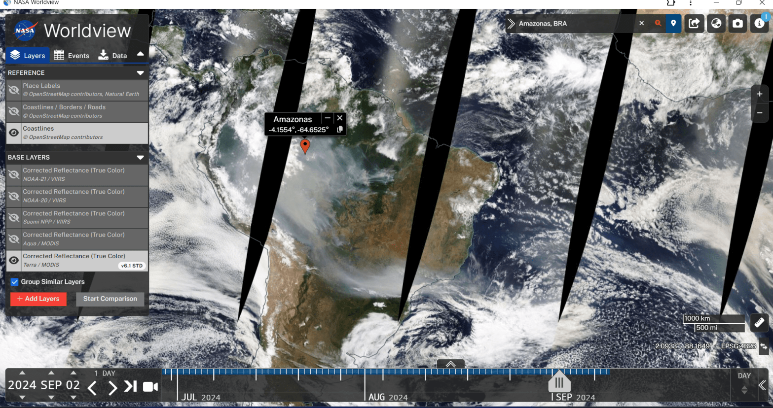 As the satellite images roll in from early September 2024, the extent of the damage becomes ever clearer. A thick haze of smoke, dark and oppressive, blankets the Amazon rainforest. It twists and churns through the atmosphere, veiling the land below in a cloak of destruction. But this is no ordinary fog—this is the smoke of death, the unmistakable signature of fires set ablaze, sparked by the hand of man and the parched earth below.
