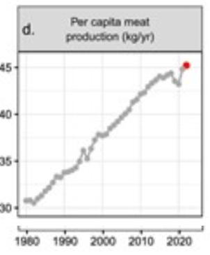 Also, the above diagram is heading unfortunately into the wrong direction. There was a short period when a reduction in meat production occurred, but this reverted dramatically again. By becoming vegetarians or vegans, we could create a big space of recreation for our planet because massive areas for growing ped food could be released to mother nature. This adaption from economical to psychological aspects, from meat eater to vegetarian/vegan eater is actually quite affordable, but for most people it seems impossible.